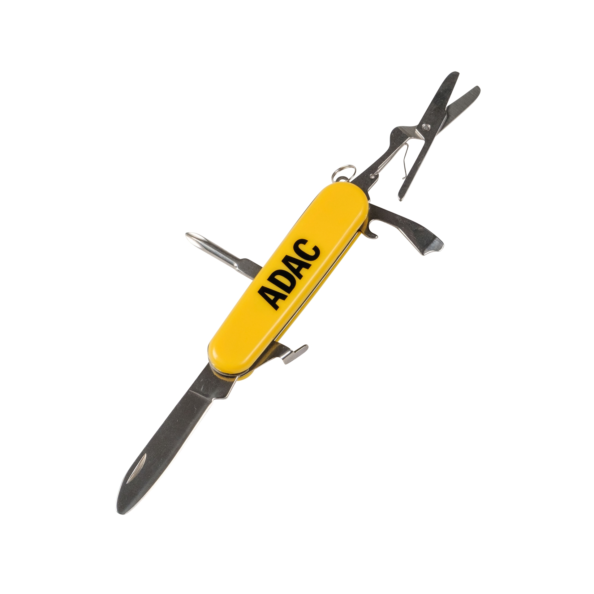 Aus Edelstahl, mit Klinge, Schraubendreher, Schere, Flaschenöffner & Aufbewahrungstasche mit Gürtelschlaufe, ca. 9 x 2 x 1 cm.