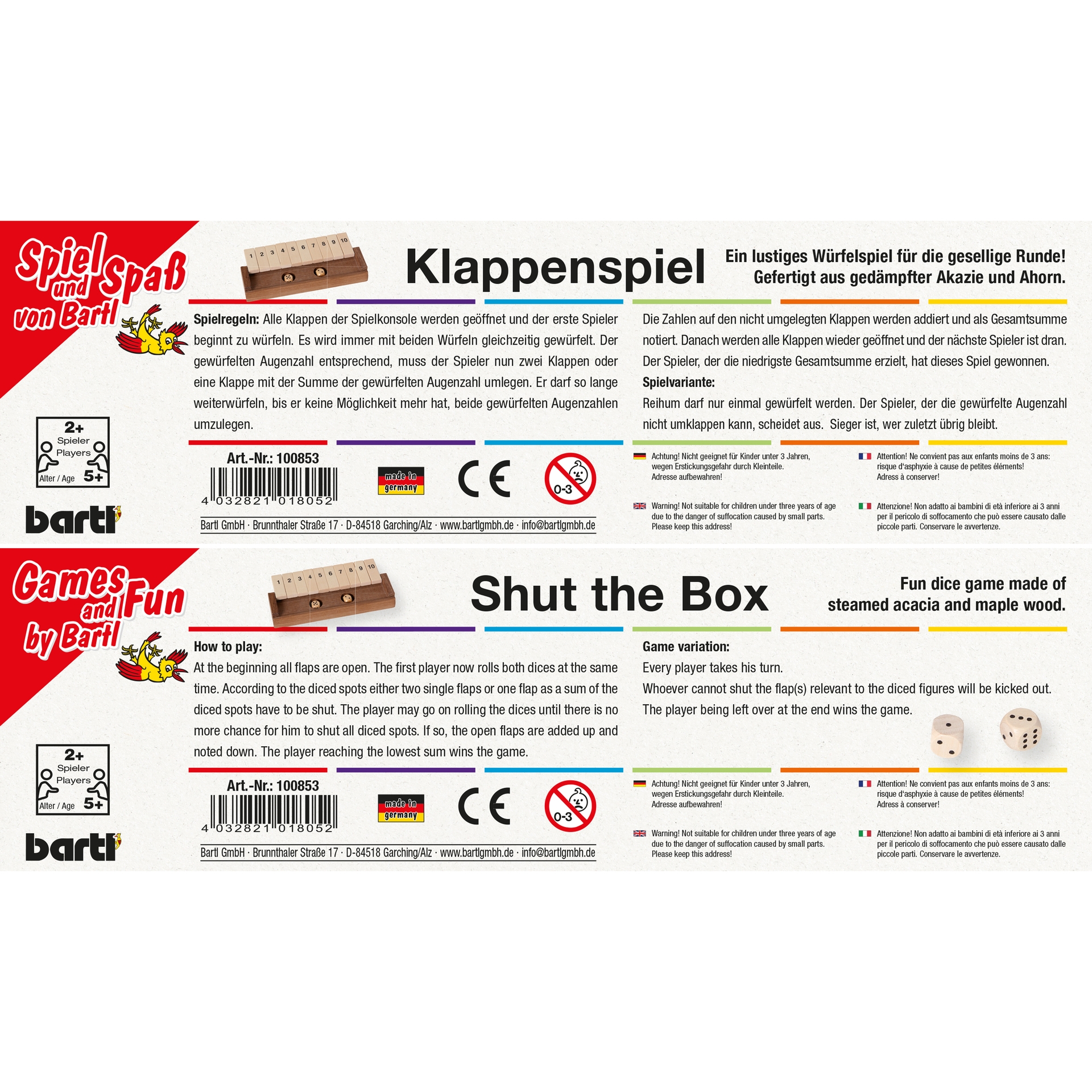 Spieleklassiker für Klein und Groß.Es wird immer die Zahlen oder dernen Summe umgeklappt, die man gewürfelt hat.