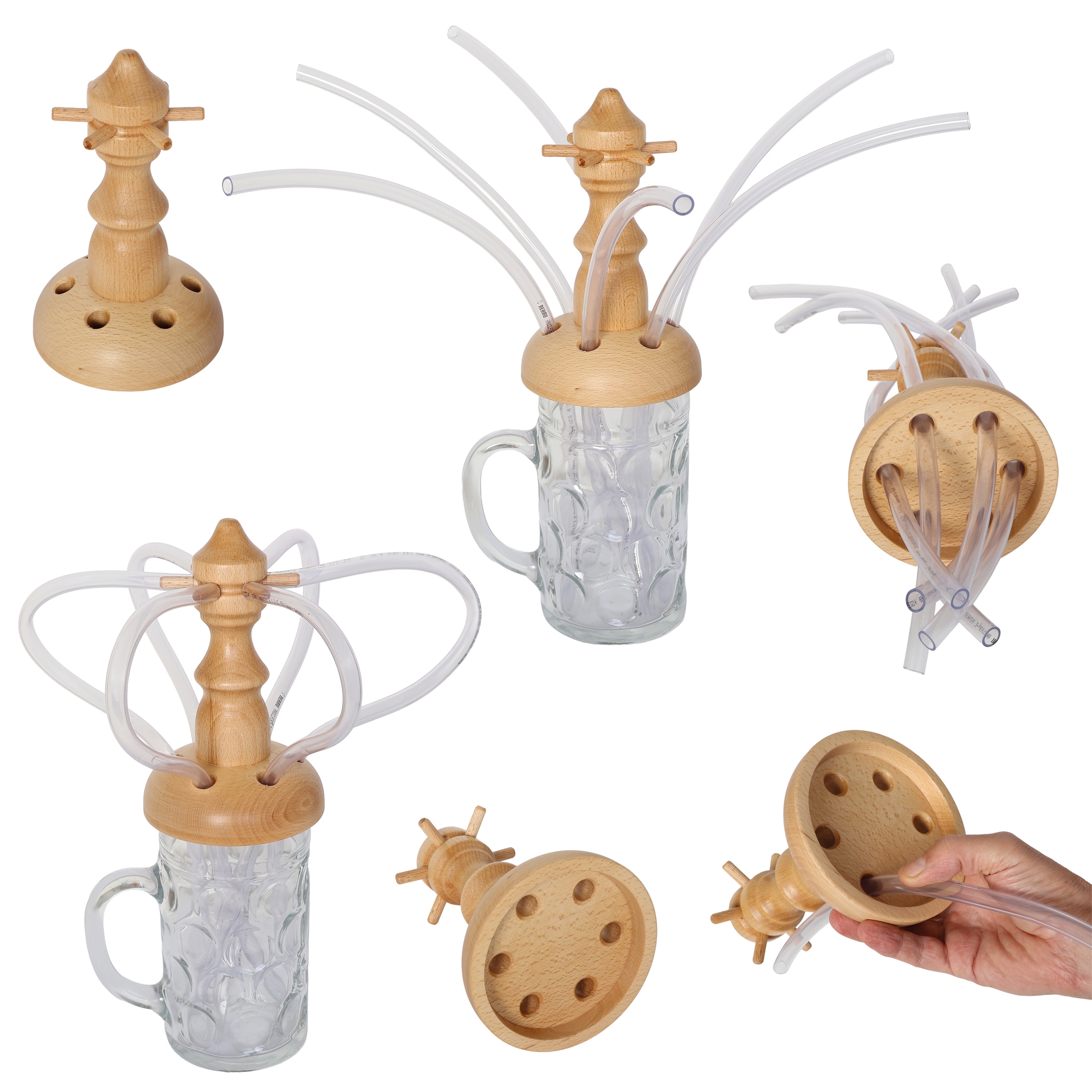 Beliebter Partyspaß: Wie eine Maß Bier von maximal sechs Leuten berauschend schnell geleert werden kann, muss man gesehen haben! Die Saufmaschine ist auch für Antialkoholiker limo-, milch- oder wassergefüllt ein toller Spaß!