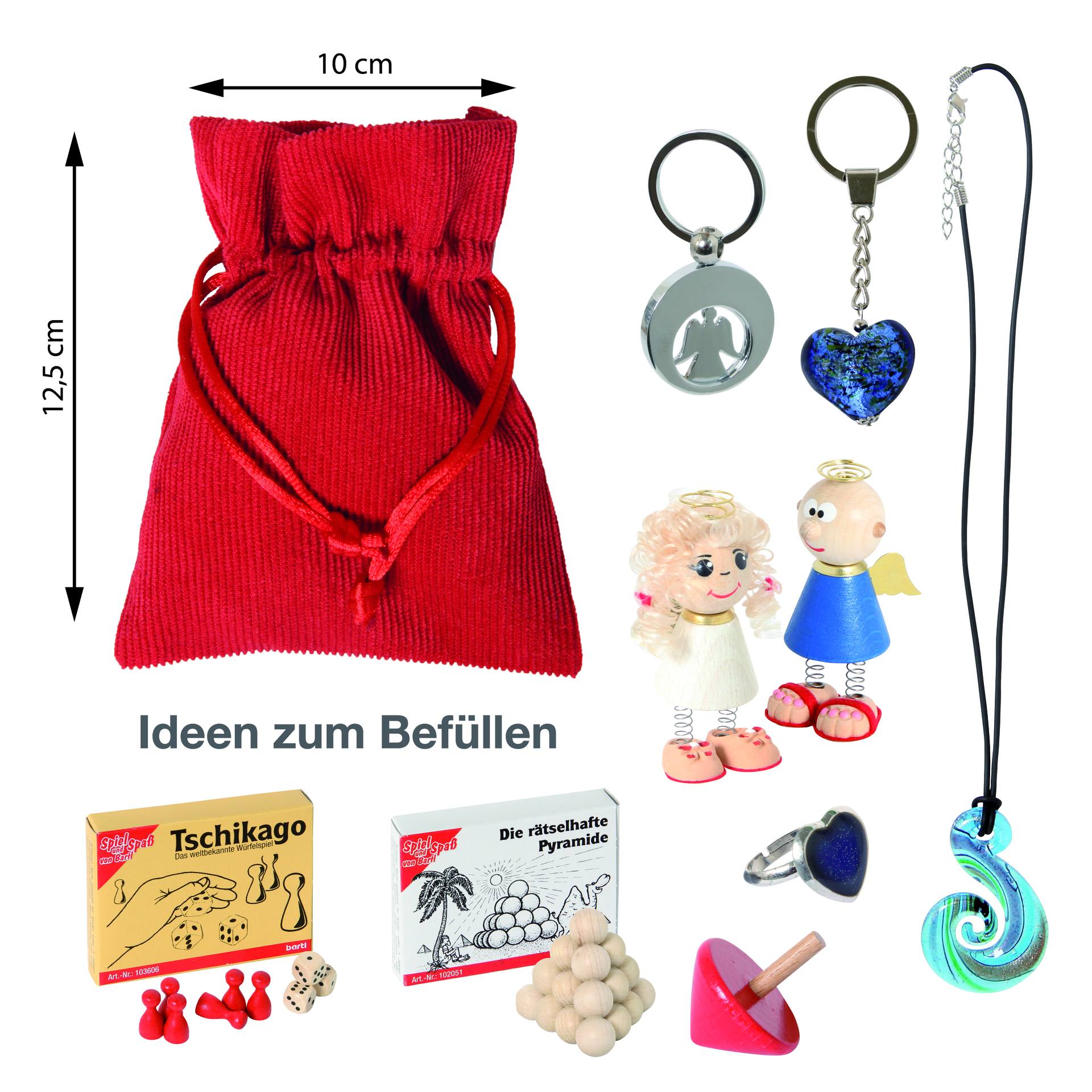 Small items with a maximum diameter or width of 6 cm fit through the opening of the bags. That's more than enough for most typical Advent calendar gifts.