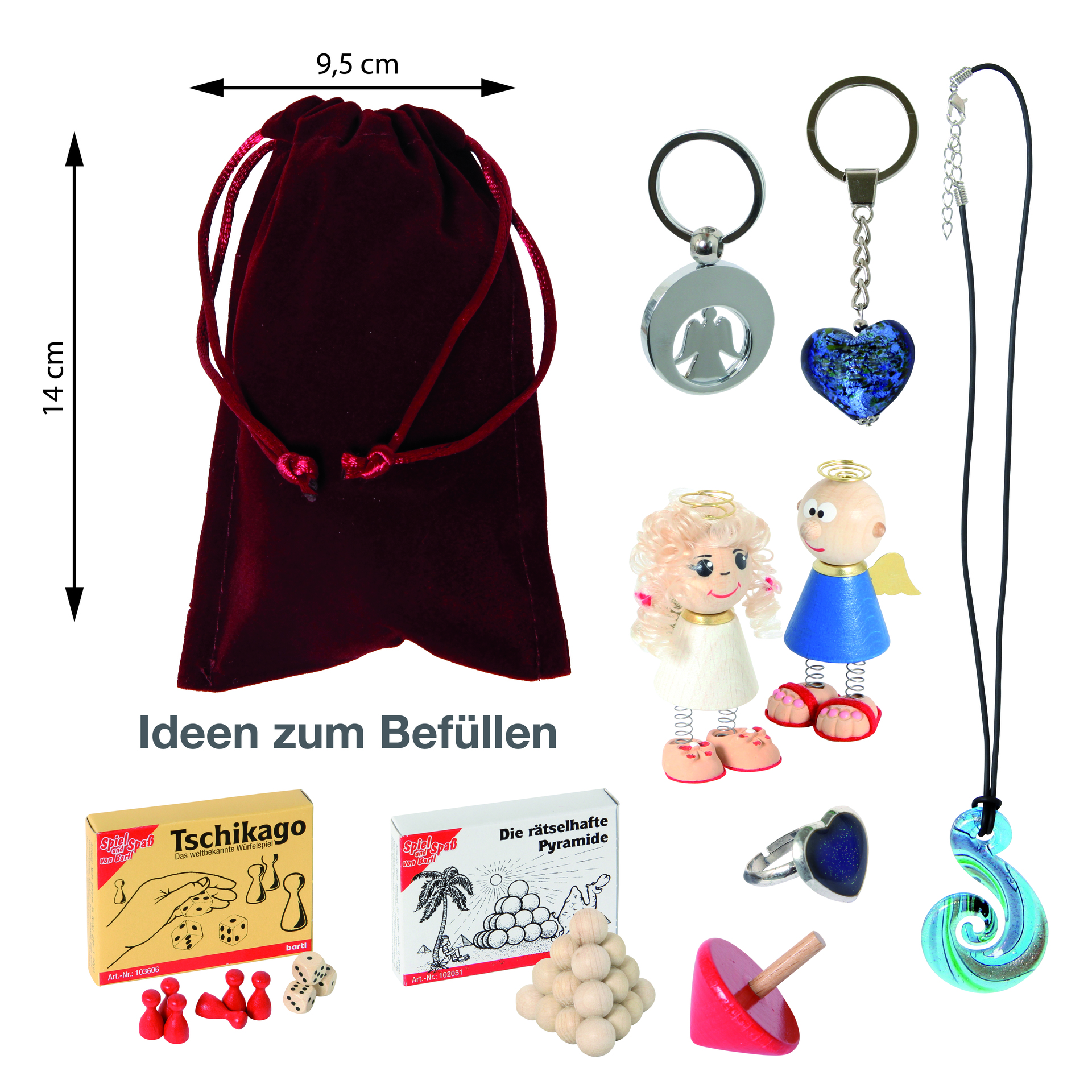 Small items with a maximum diameter or width of 5 cm fit through the opening of the bags. That's more than enough for most typical Advent calendar gifts.
