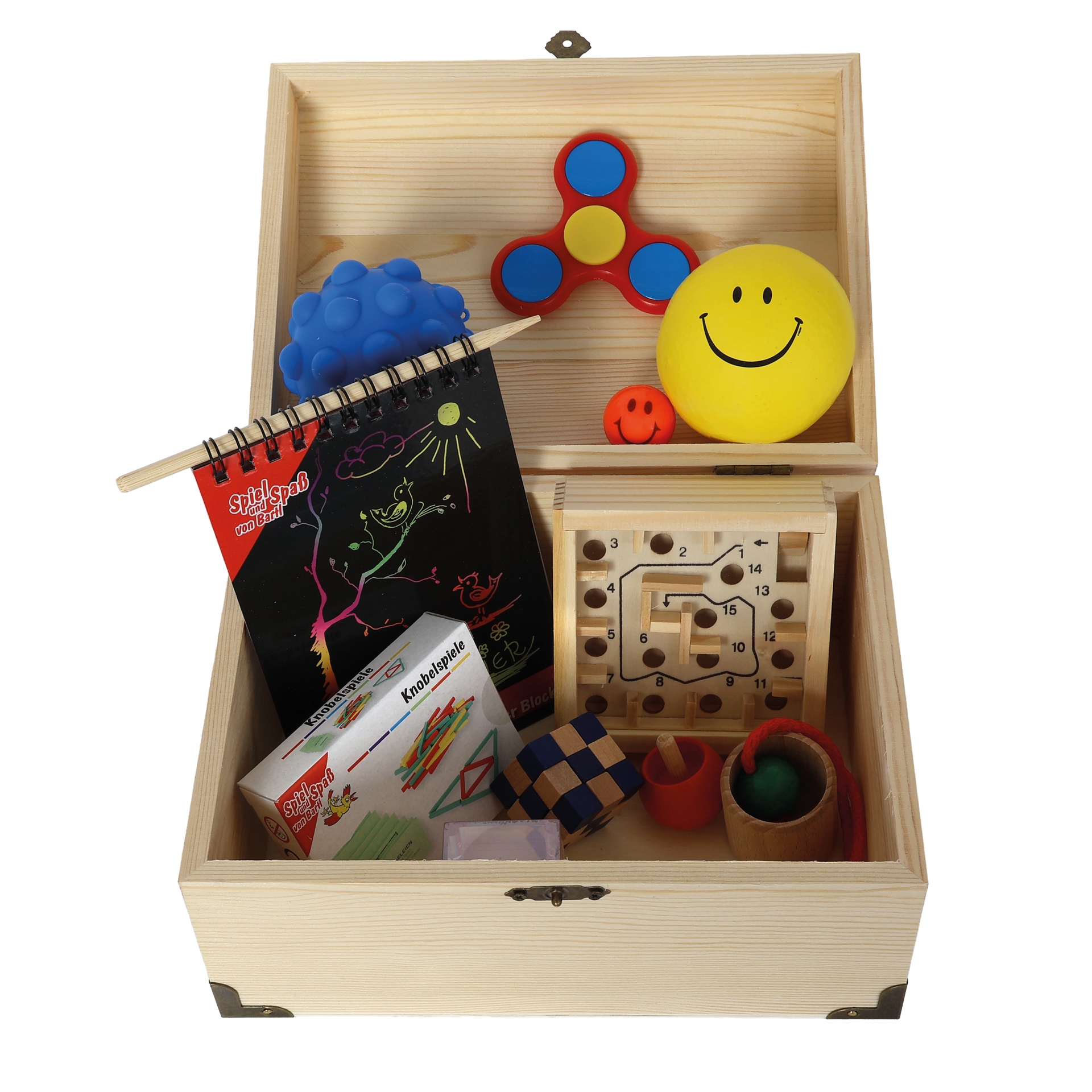 The ideal gift for those suffering from stress contains a colorful selection of little things to fiddle with and keep you busy:1 pop-up ball