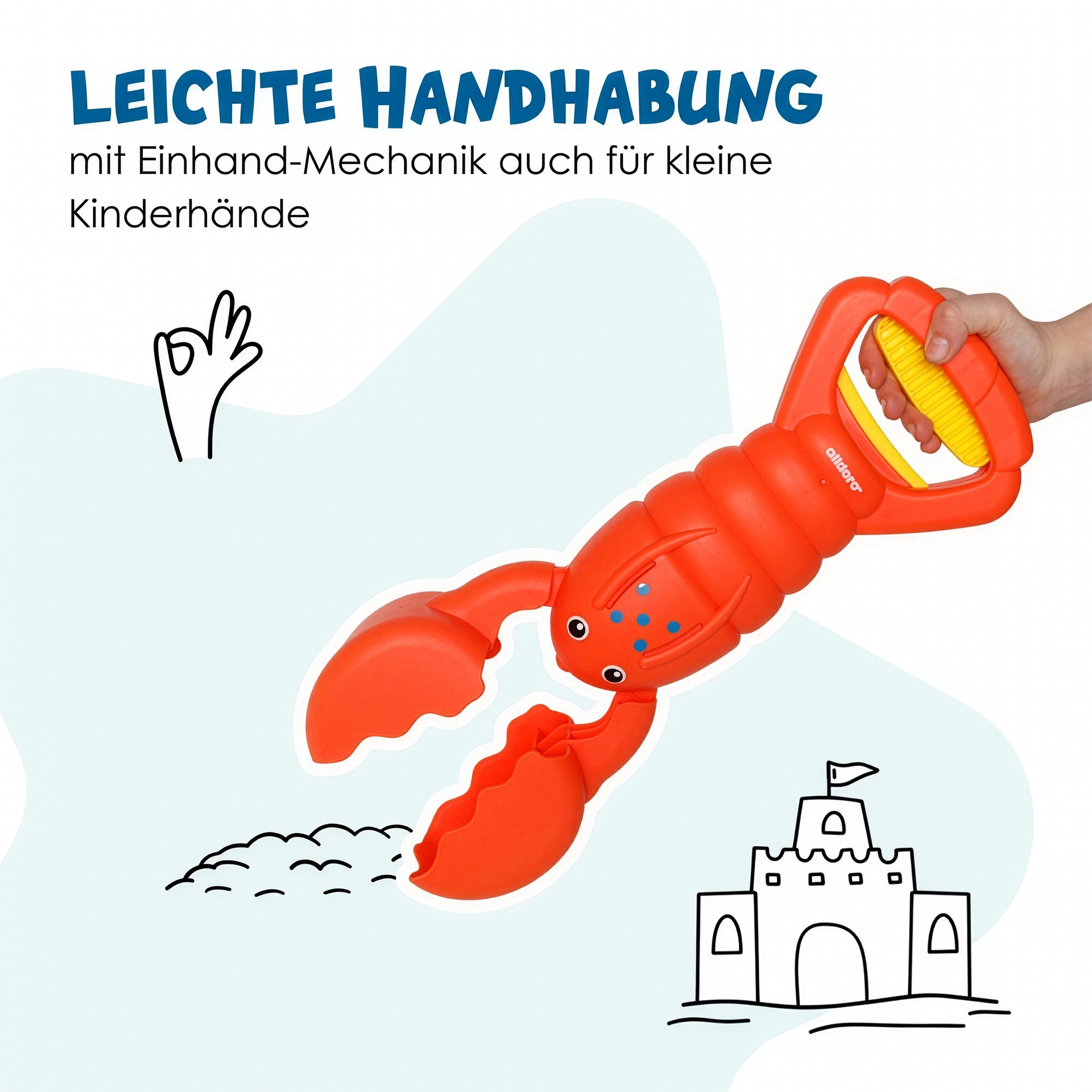 This fun crab-shaped grabber can be operated with one hand and is a great companion for the garden, sandbox, playground, or beach.
