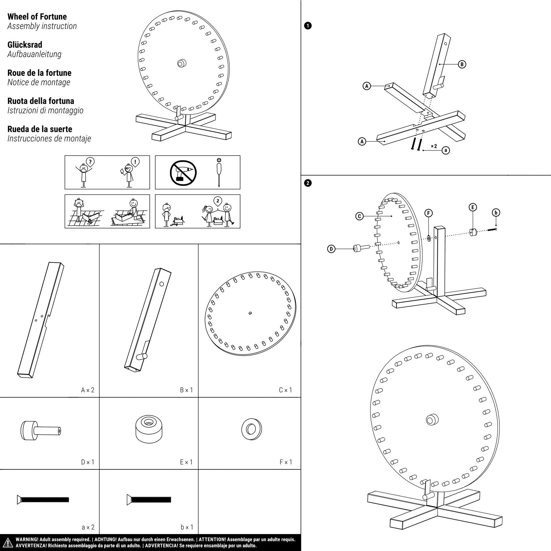 The wheel spins smoothly on its stable, solid wood stand, and the individual spaces are equipped with wooden pegs that rattle merrily against the stopper.