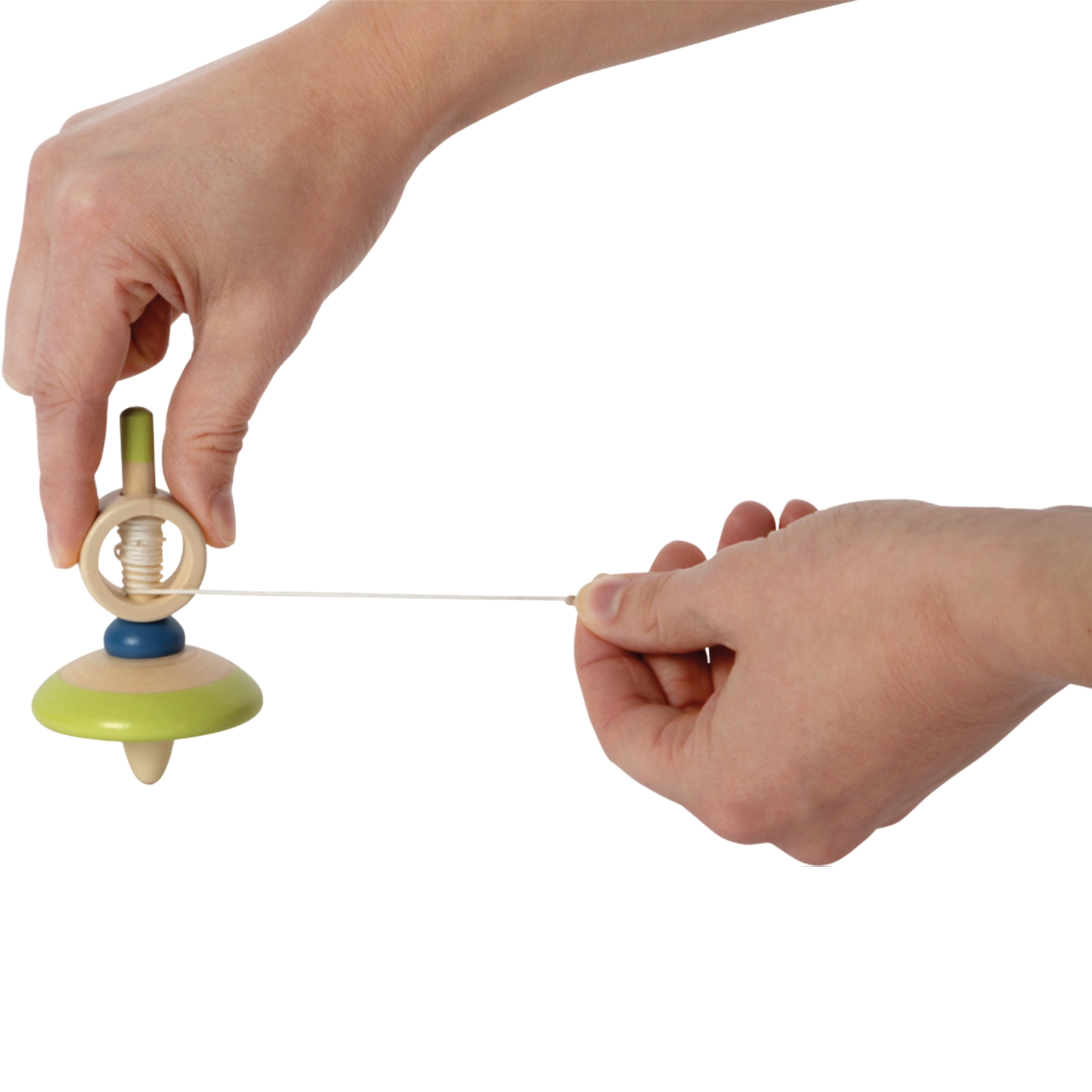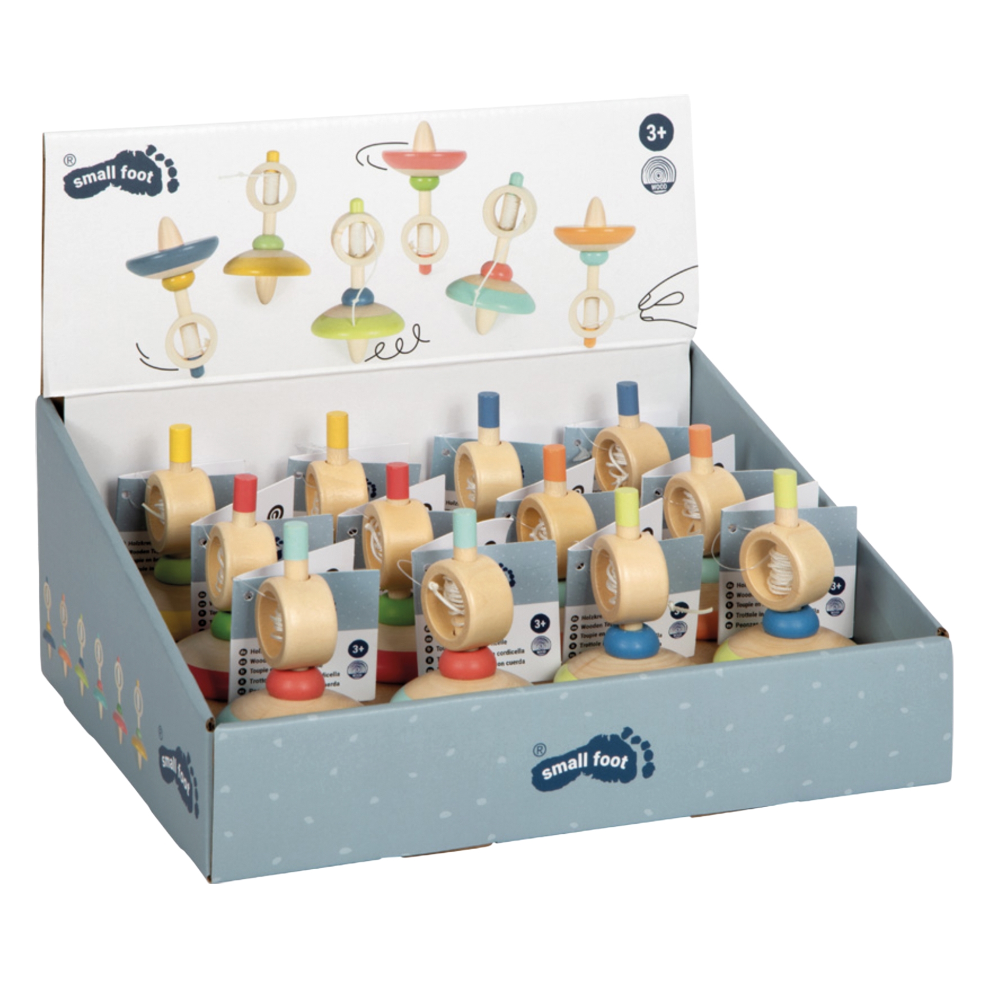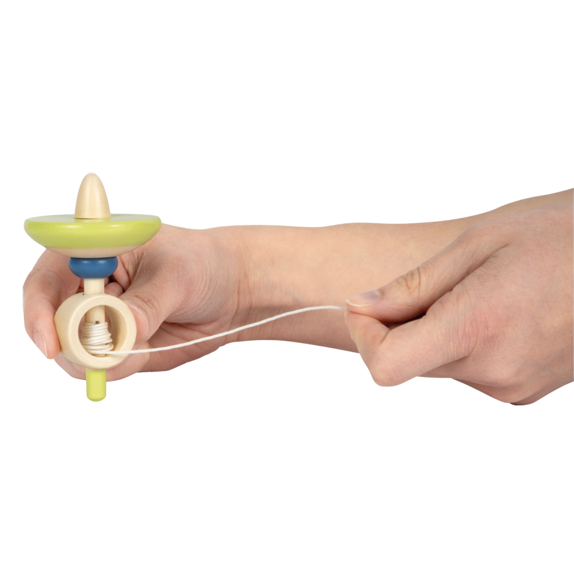Holzkreisel mit Schnur, sortiert